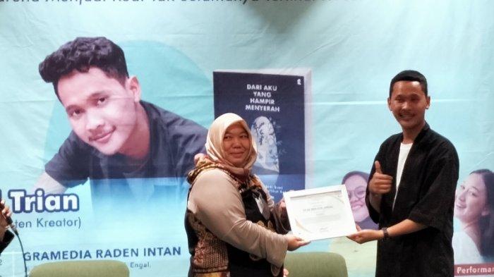 "Sebenarnya saya memang senang menulis meskipun latar belakang saya bukan dari jurusan sastra ataupun bahasa," kata Trian dalam acara Booktalk di Gramedia Raden Intan, Sabtu (11/6/2022)