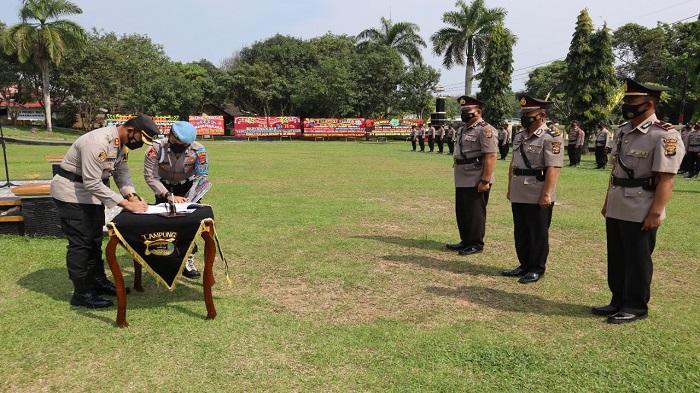 Kapolres juga mengucapkan selamat atas promosi jabatan kepada Ipda Untung Pribadi sebagai Kapolsek Bumi Agung.