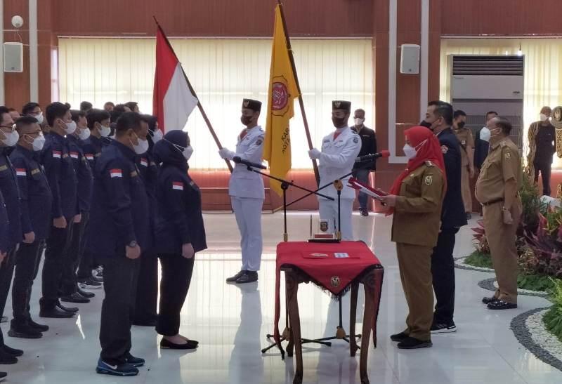 Tribunlampung.co.id, Bandar Lampung - Wali Kota Bandar Lampung, Eva Dwiana melantik pengurus Karang Taruna Bandar Lampung periode 2022-2027, Selasa (19/8/2022).