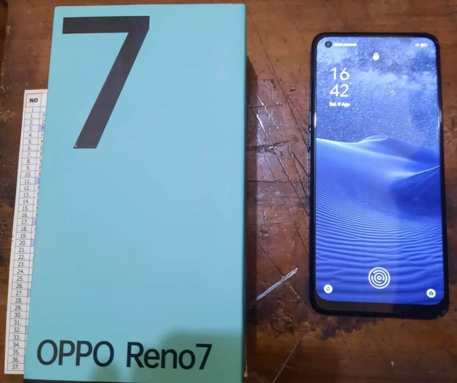Pelaku pun diamankan bersama barang bukti HP merek OPPO Reno 7 berikut kotaknya.