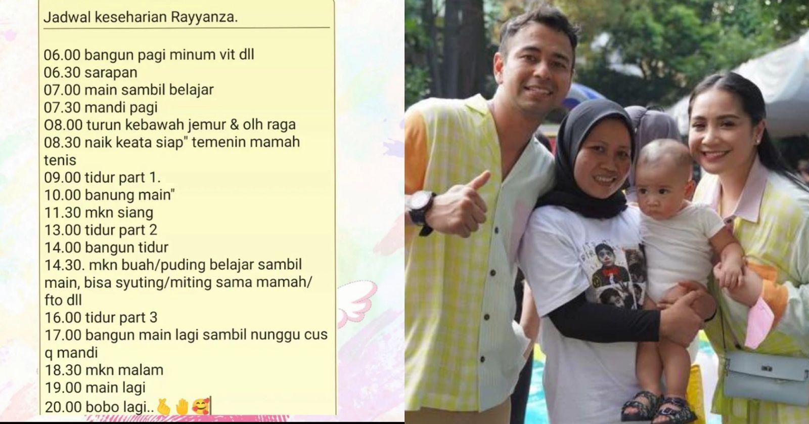Hal itu diketahui setelah babysitter Rayyanza, Rini Perdiyanti mengunggah jadwal keseharian anak Raffi Ahmad dan Nagita Slavina itu ke Instagram.