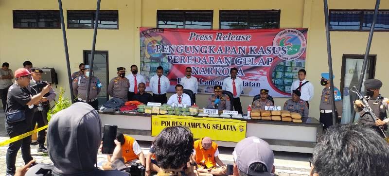 Hal itu diketahui dari keterangan Wakapolres Lampung Selatan Kompol Sukamso saat menggelar Press Rilis pengungkapan kasus Narkoba selama dua minggu terakhir, di halaman Polres Lampung Selatan, pada Senin (5/9/2022) sekitar pukul 10.00 WIB.