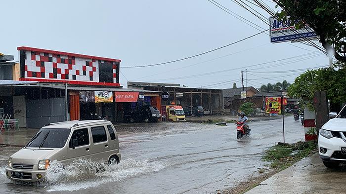 Hujan Turun Cuma 4 Jam, Jalan Protokol di Pringsewu Tergenang Air