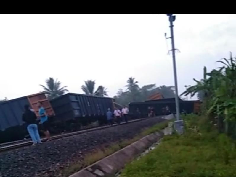 Akibatnya, KA Babaranjang yang dalam kondisi bermuatan nampak memuntahkan batubara muatannya.
