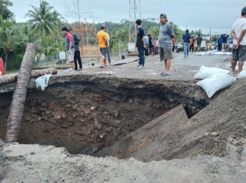 Ruas Jalinbar Pesisir Barat, Lampung putus setelah amblas diterjang luapan air sungai Way Laay, Kecamatan Karya Penggawa .