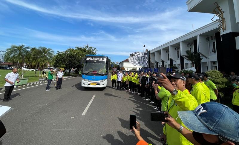 Ke-317 atlet asal Lampung Utara yang akan berlaga di Porprov dilepas oleh Bupati Lampung Utara Budi Utomo.
