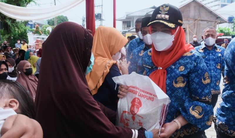 Wali Kota Bandar Lampung Eva Dwiana mengatakan, bantuan beras dibagikan untuk warga di 20 kecamatan yang ada di Kota Tapis Berseri.