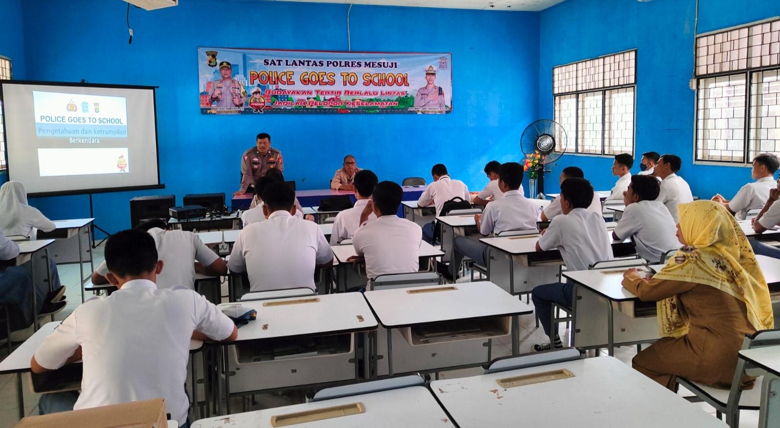 Satlantas Polres Mesuji, Polda Lampung melalui Unit Kamsel melaksanakan Giat Police Goes to School ke SMAN 01 Way Serdang.