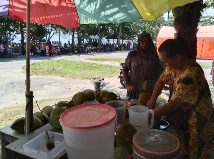 Pada hari biasa Mama Baim ini hanya mampu menjual es degan di wisata Pantai Labuhan Jukung Krui Pesisir Barat, Lampung sebanyak 20 buah buah kelapa.