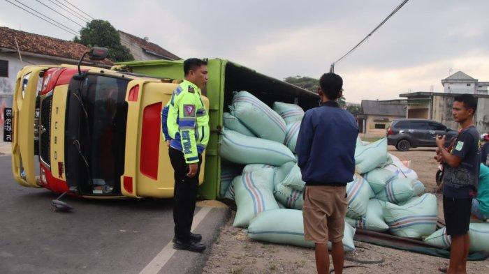 Alhasil kendaraan truk yang dikendarai Gunawan langsung mengalami oleng hingga sampai terguling.