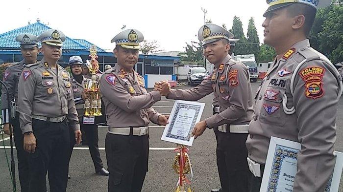 Kapolres Lampung Timur, Polda Lampung, AKBP M Rizal Muchtar melalui Kasatlantas AKP Bima Alief Caesar Gumilang menerima langsung tropi atas kemenangan sebagai Juara II di Ditlantas Polda Lampung pada Rabu (5/7/2023) pagi.