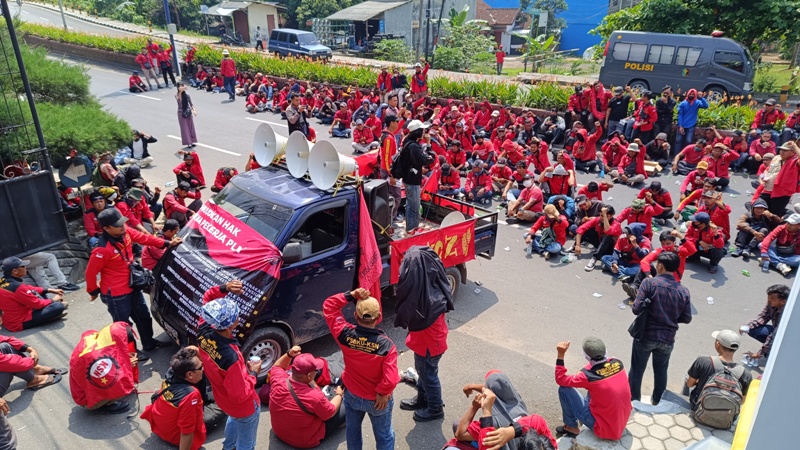 Wakil korlap aksi Heri Juliadi mengatakan, jumlah massa sebanyak 500 orang terdiri dari tenaga outsourcing (os) dari PT PLN UID Lampung tuntut kejelasan perusahaan yang memberi kerja.