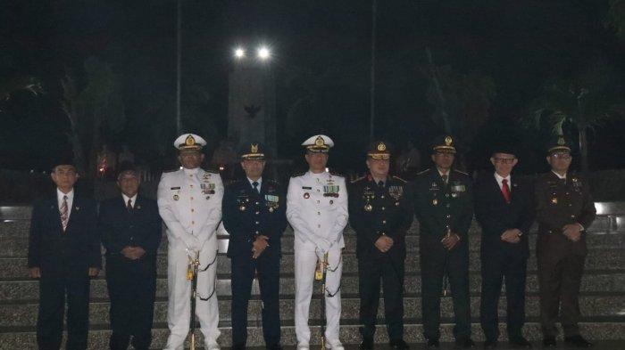 Tribunlampung.co.id, Bandar Lampung - Sejumlah personel Polda Lampung turut serta mengikuti Apel Kehormatan dan Renungan Suci memperingati Hari Ulang Tahun Kemerdekaan Republik Indonesia ke- 78 di Taman Makam Pahlawan Tanjung Karang, Bandar Lampung, Kamis (17/8/2023) dini hari.