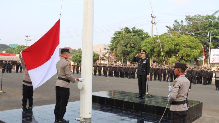 Polres Metro, Polda Lampung, peringati Hari Kemerdekaan Republik Indonesia ke 78 dengan menggelar upacara bendera di halaman mapolres.