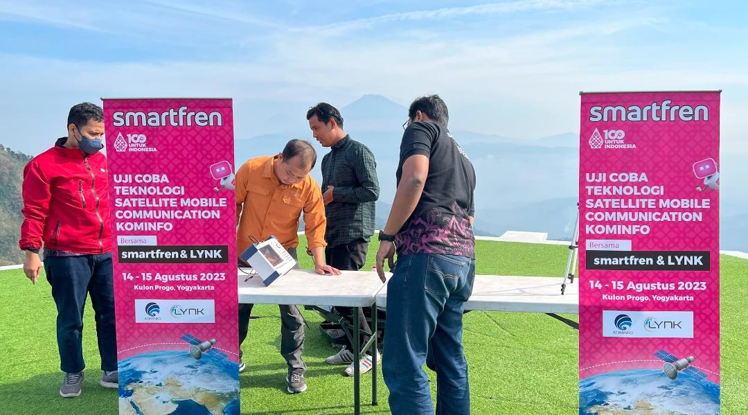 Kominfo bersama Smartfren dan Lynk Global bekerjasama uji coba teknologi Satellite Mobile Solution di Tumpeng Menoreh, Kulon Progo, Yogyakarta.