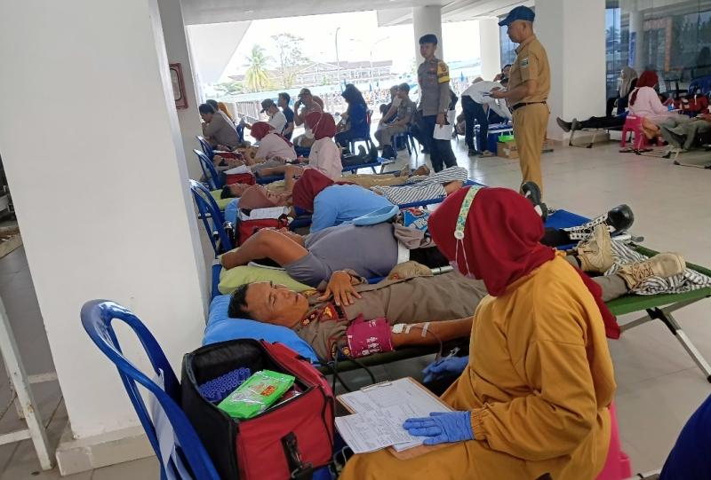 Tribunlampung.co.id, Pesisir Barat - Karang Taruna Kabupaten Pesisir Barat, Lampung, bekerja dengan Palang merah Indonesia atau PMI Lampung Utara gelar aksi donor darah di lingkungan pemkab setempat.