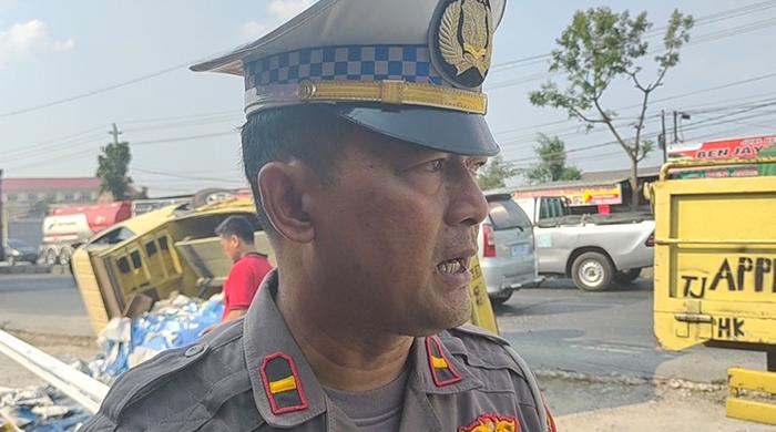 Sopir truk pengangkut sagu membenarkan kendaraannya alami rem blong sebelum kecelakan di Jalan Soekarno-Hatta, Bypass, Bandar Lampung.