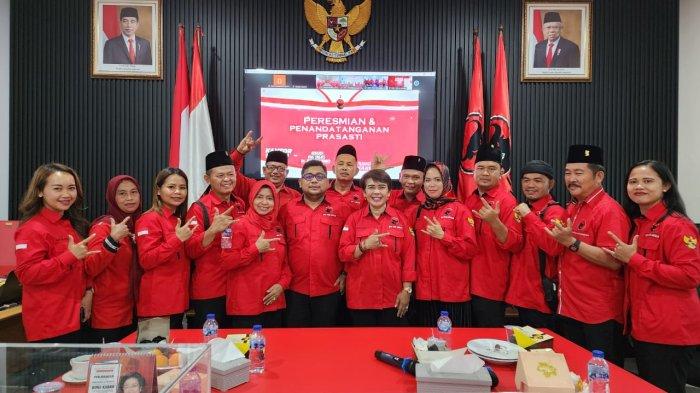 Tribunlampung.co.id, Mesuji - Ketua Umum PDIP Megawati Soekarnoputri meresmikan Sekretariat DPC PDIP Mesuji secara virtual, Senin (16/10/2023).