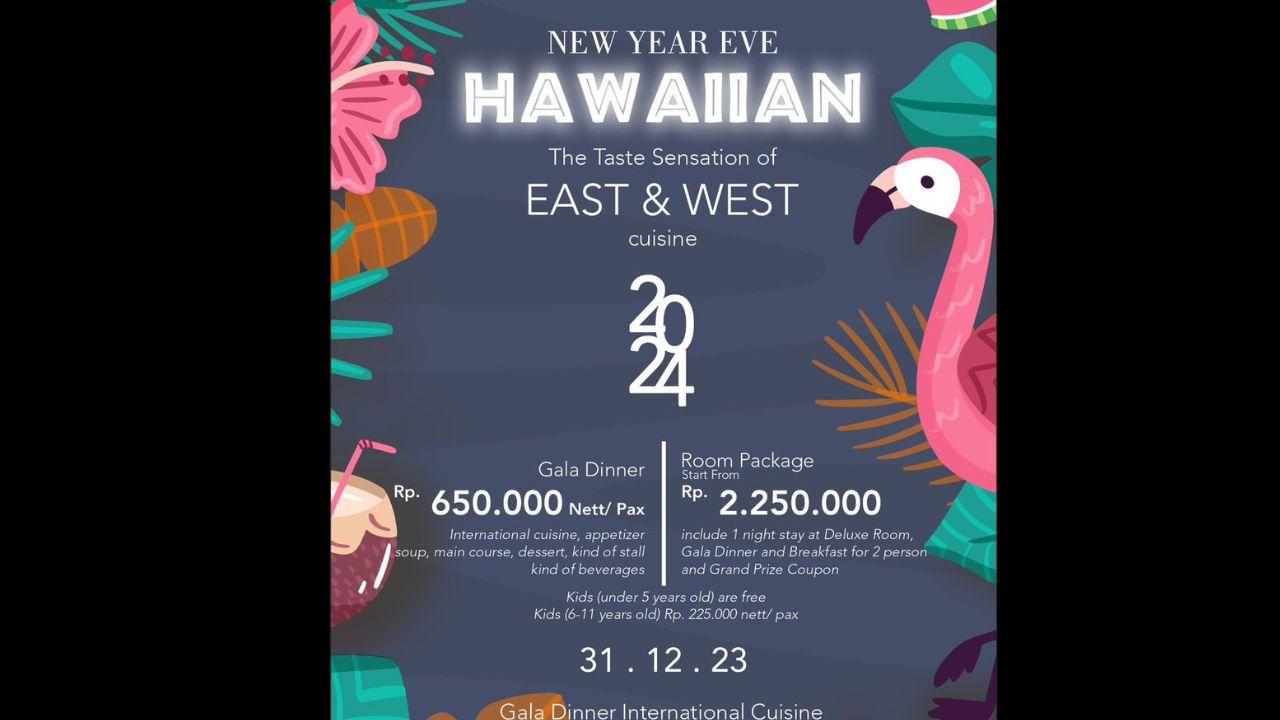 Public Relations Coordinator Hotel Santika Premiere Lampung Desmonda mengatakan, acara ini bertema New Year Eve Hawaiian The Taste Sensation of East and West Cuisine 2024.