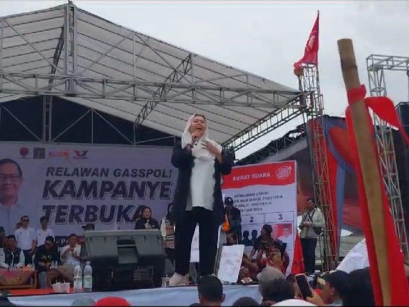 Selain bernyanyi, Yenny Wahid juga mengajak warga Lampung Timur untuk mendukung Ganjar Mahfud MD dalam ajang Pilpres 2024.