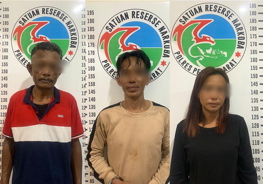 Tiga pelaku penyalahgunaan narkoba jenis sabu diamankan oleh Satresnarkoba Polres Pesisir Barat di Pekon Penyandingan, Kecamatan Bangkunat.