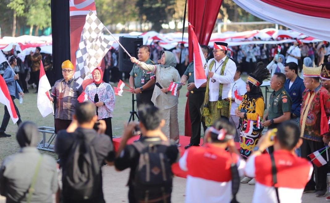 TRIBUNLAMPUNG.CO.ID, Bandar Lampung - Universitas Lampung (Unila) menggelar Kirab Merah Putih sebagai bagian perayaan Dies Natalis ke-59.