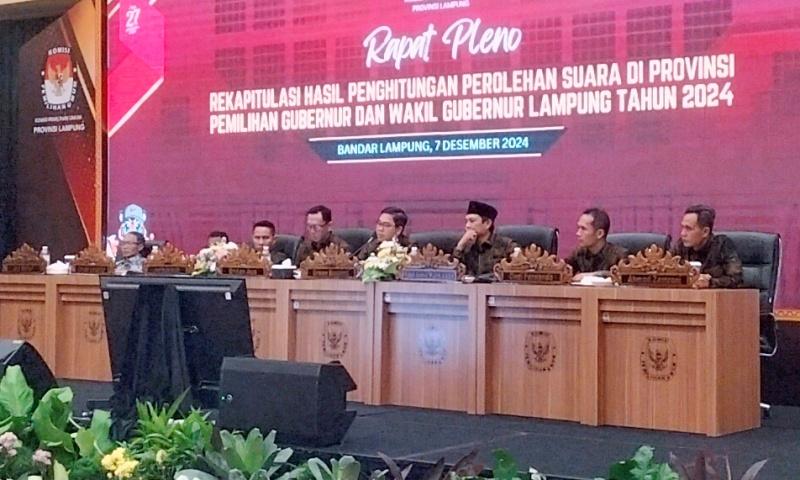 Pleno perhitungan suara Pilgub Lampung dan saksi paslon 01 menyoroti rendahnya partisipasi pemilih akibat C6 terlambat dan kurang sosialisasi