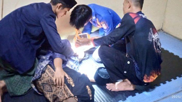 TRIBUNLAMPUNG.CO.ID, Pringsewu - Tim Satgas Pemadam Kebakaran BPBD Pringsewu mengevakuasi kapas dari dari telinga santri dari Pondok Pesantren Podomoro, Kecamatan Pringsewu, Selasa (4/2/2025) malam.