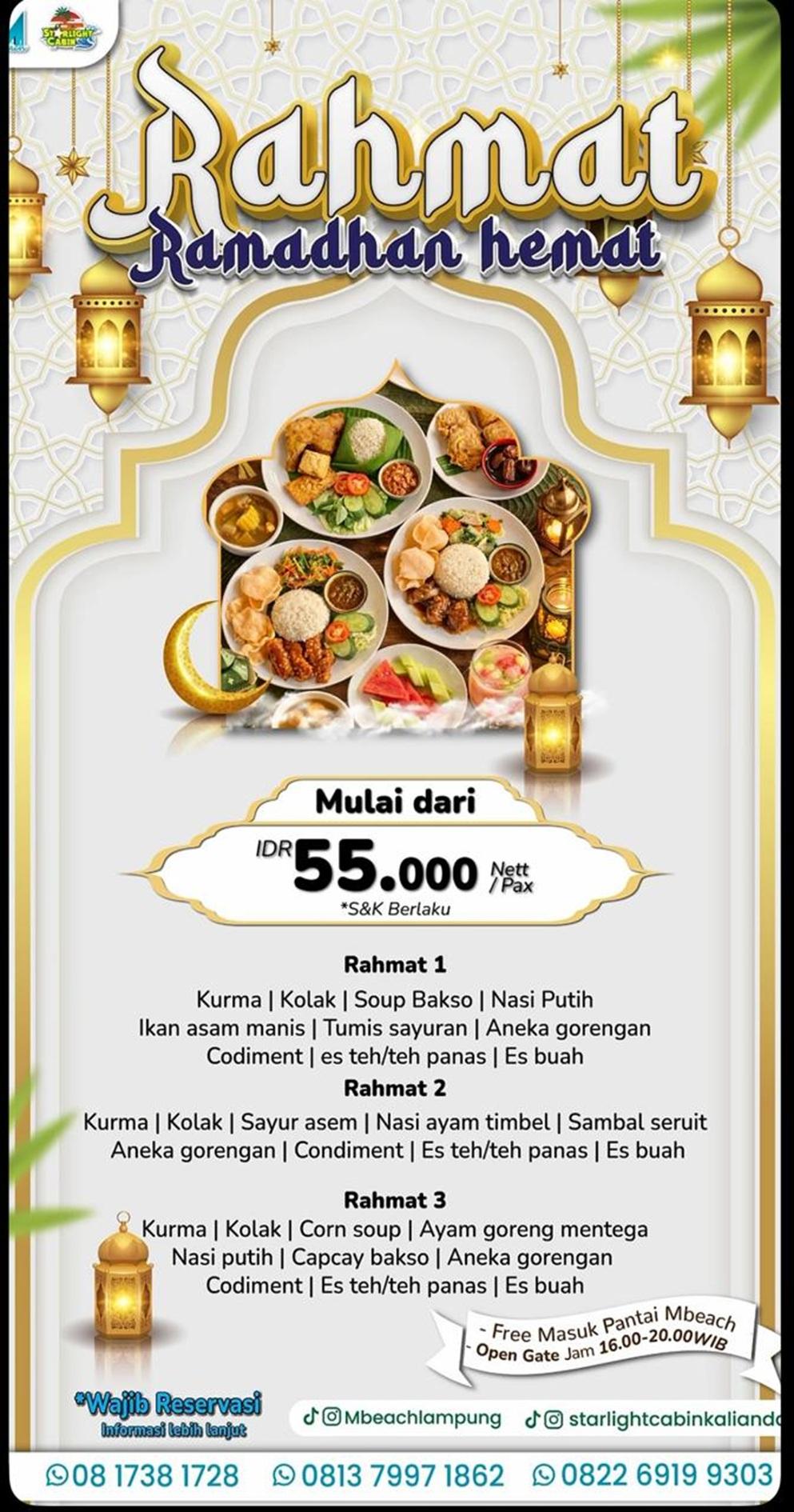 Program bukber Rahmat ditawarkan MBeach di momen Ramadan, ada tiga pilihan paket mulai Rahmat 1, 2 dan 3.