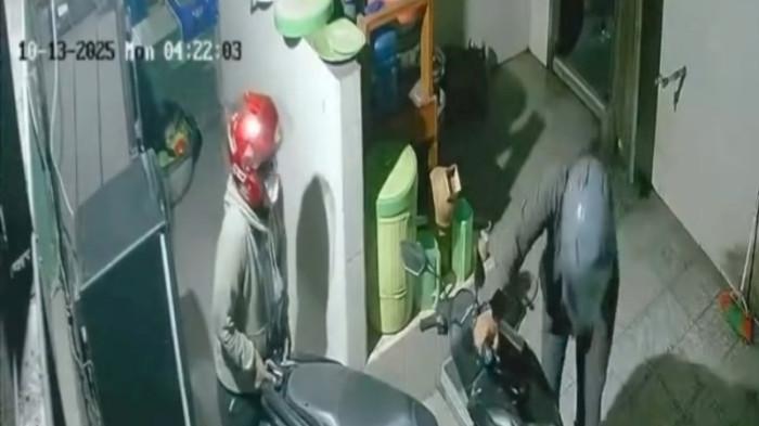 Pelaku tersebut mengangkat motor korban yang berada di dapur rumah korban.