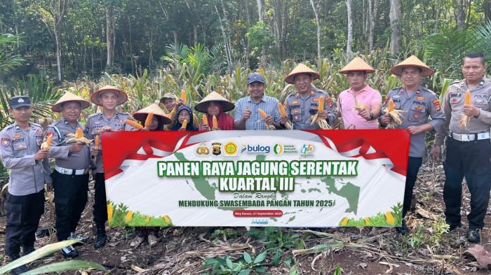 Polsek Blambangan Umpu ikuti panen raya Serentak jagung Kuartal III di Tanjung Mas, Kampung Negeri Baru, Senin (29/9/2025).