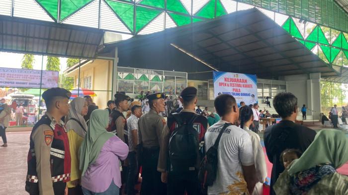 TRIBUNLAMPUNG.CO.ID, Tulangbawang - Personel Satuan Samapta Polres Tulangbawang, Polda Lampung amankan Turnamen dan Festival Karate Piala Bupati Tulangbawang di Lapangan Tenis Indoor Menggala, Minggu (26/10/2025).