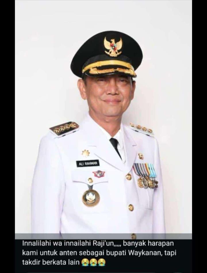 Bupati Way Kanan Periode 2025-2030, Ali Rahman dikabarkan meninggal dunia di Rumah Sakit Umum Daerah Abdul Moeloek (RSUDAM).