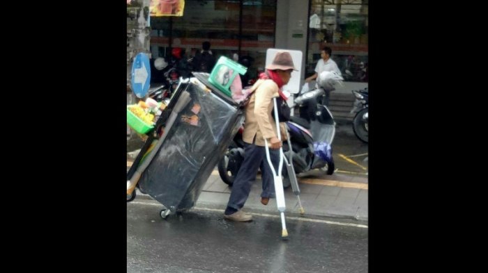 Beliau jualan snack untuk anak-anak hanya untuk menyambung hidup tanpa menunggu belas kasian orang.