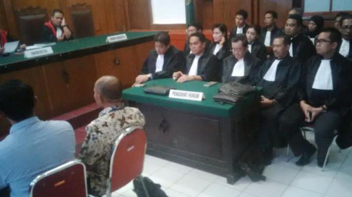 Bahkan, para pengacara yang mengenakan atribut kuasa hukum berjubah hitam dan dasi putih itu, terlihat ada yang duduk di bangku peserta sidang.