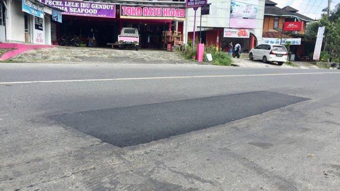 Proyek tambal sulam di Jalan Lintas Nasional tepatnya di Jalan Sebarus, Kecamatan Balik Bukit, Kabupaten Lampung Barat tak juga kunjung diperbaiki.