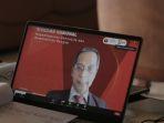 Rektor Universitas Lampung (Unila) Prof. Dr. Karomani, M.Si., memimpin rapat lanjutan pembuatan Film Raden Inten 2 via Zoom, Senin, 31 Mei 2021.