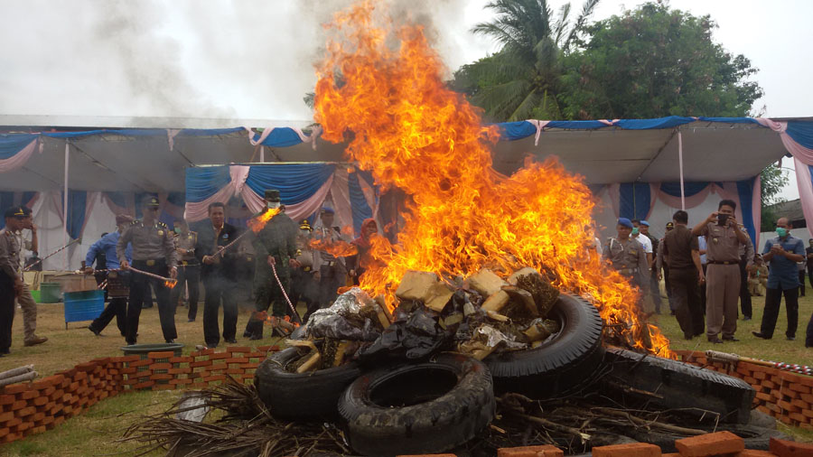 Kapolda Lampung Irjen Pol Sudjarno memusnahkan barang bukti hasil tangkapan jajaran Polres Lampung Selatan dalam kurung 1 bulan terakhir.