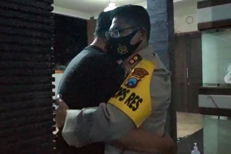 Perdamaian Kapolres Blitar AKBP Ahmad Fanani Prasetya dengan eks Kasat Sabhara AKP Agus Hendro Tri Susetyo ditandai dengan pelukan