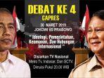 Debat Calon Presiden jelang Pilpres 17 April 2019 kembali dihelat, Sabtu (30/3/2019) malam.