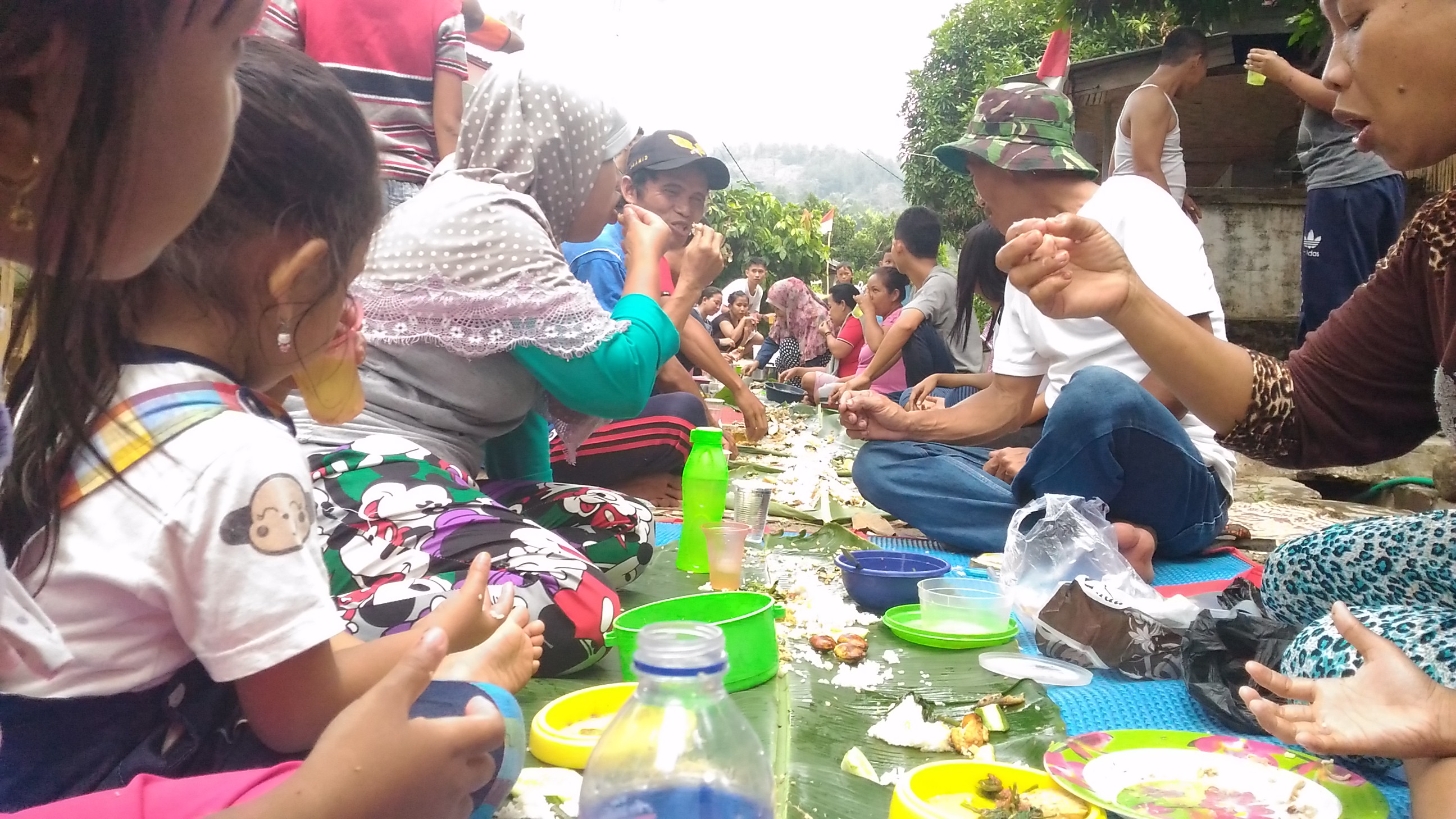 Beralaskan tikar dan daun pisang yang digelar di atas jalan yang berjejer hingga 2 km, warga Jalan RE Martadinata Gg Mangga Dua